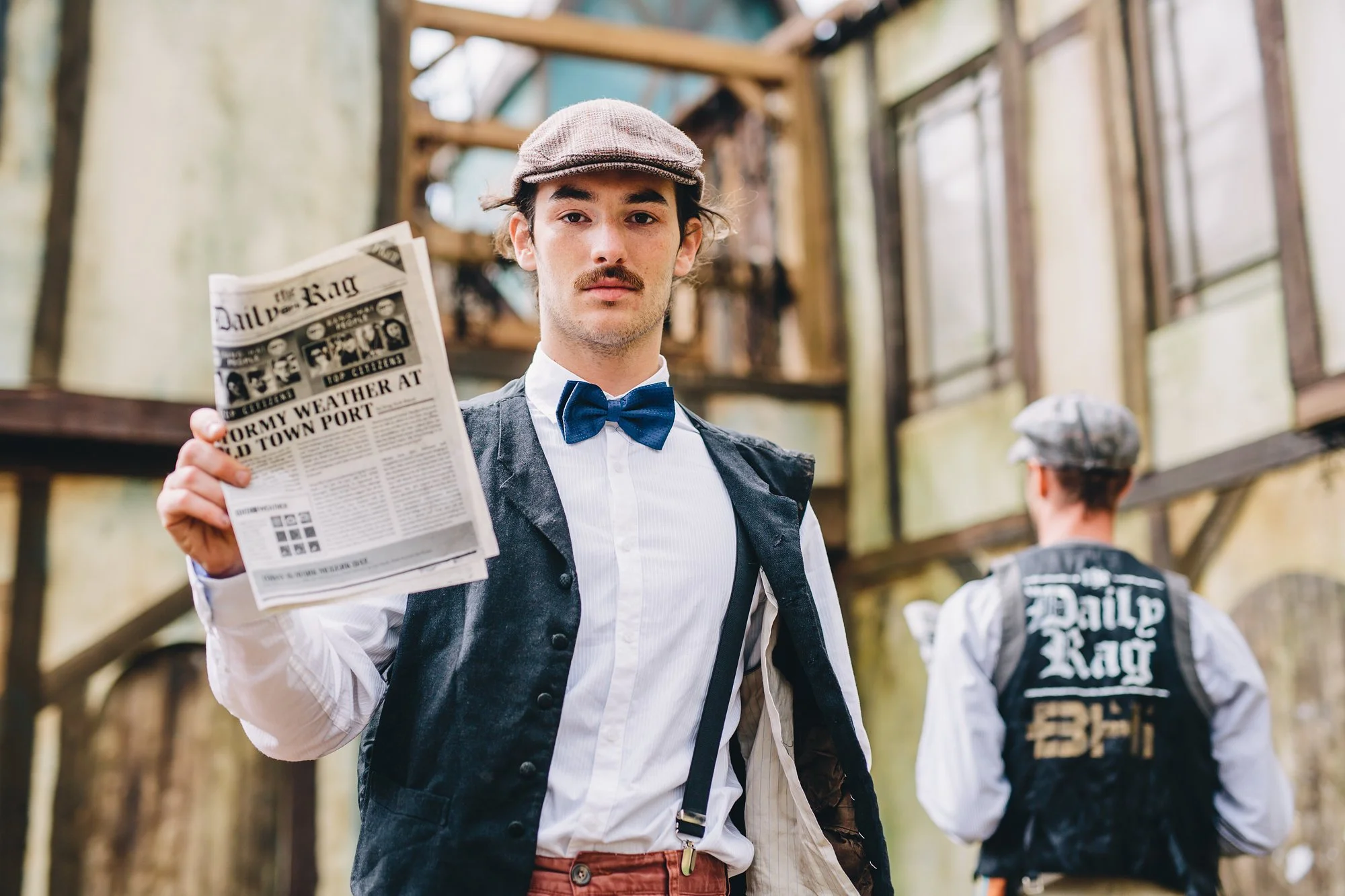 For a decade, Son and Sons produced The Daily Rag newspaper at Boomtown. The newspaper covered festival highlights and activities, created on-site, printed overnight, and distributed 10,000 copies daily during the event week. Now, we offer to apply our expertise to your event. We can transform your ideas into tailored articles, features, ads, horoscopes (and more!), with a tongue-in-cheek style. This customised content is presented in a four-page newspaper format and can be distributed by our performers. Additionally, our reporters and cartoonists can provide real-time articles and drawings for individual guests during the occasion.